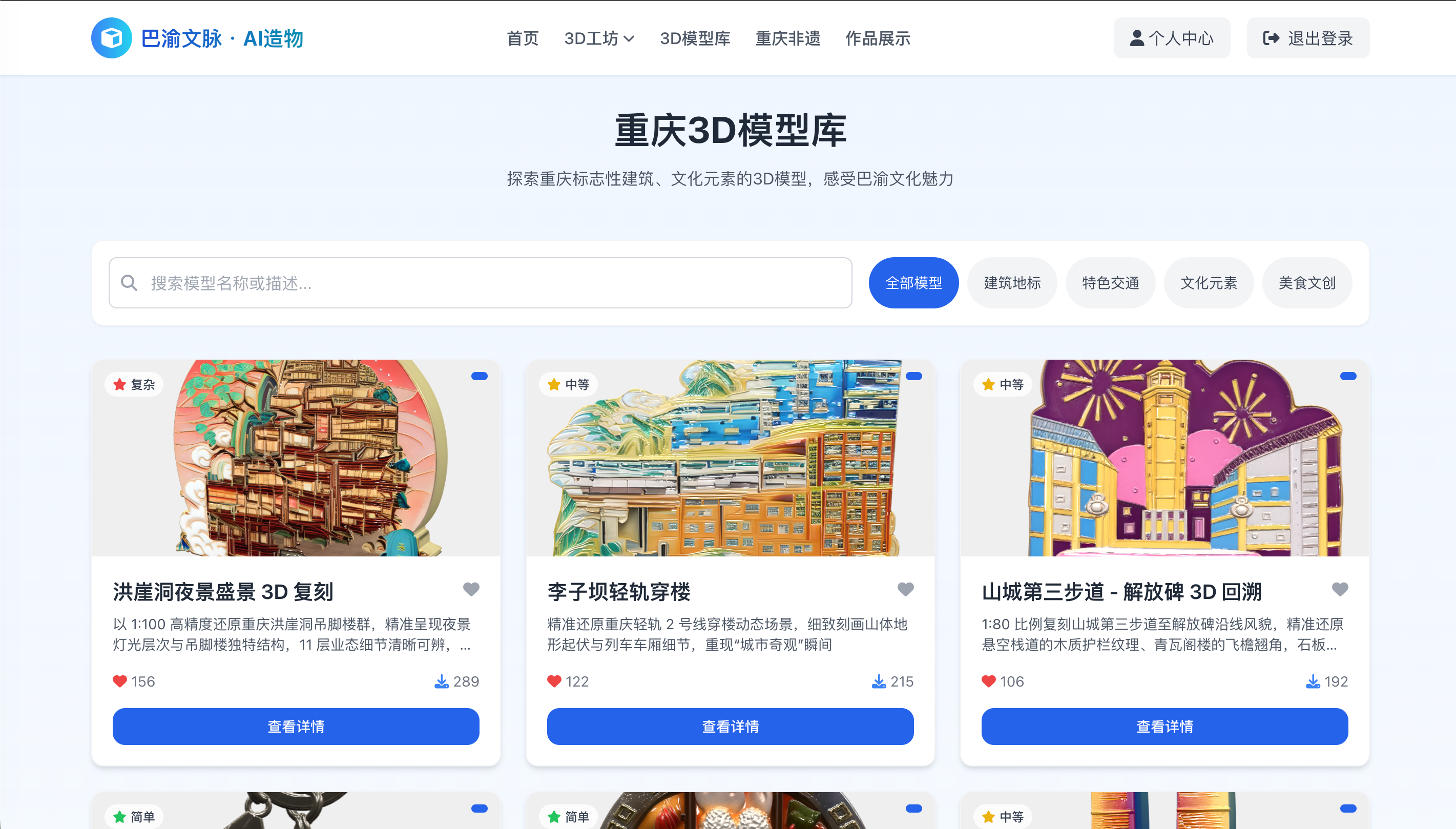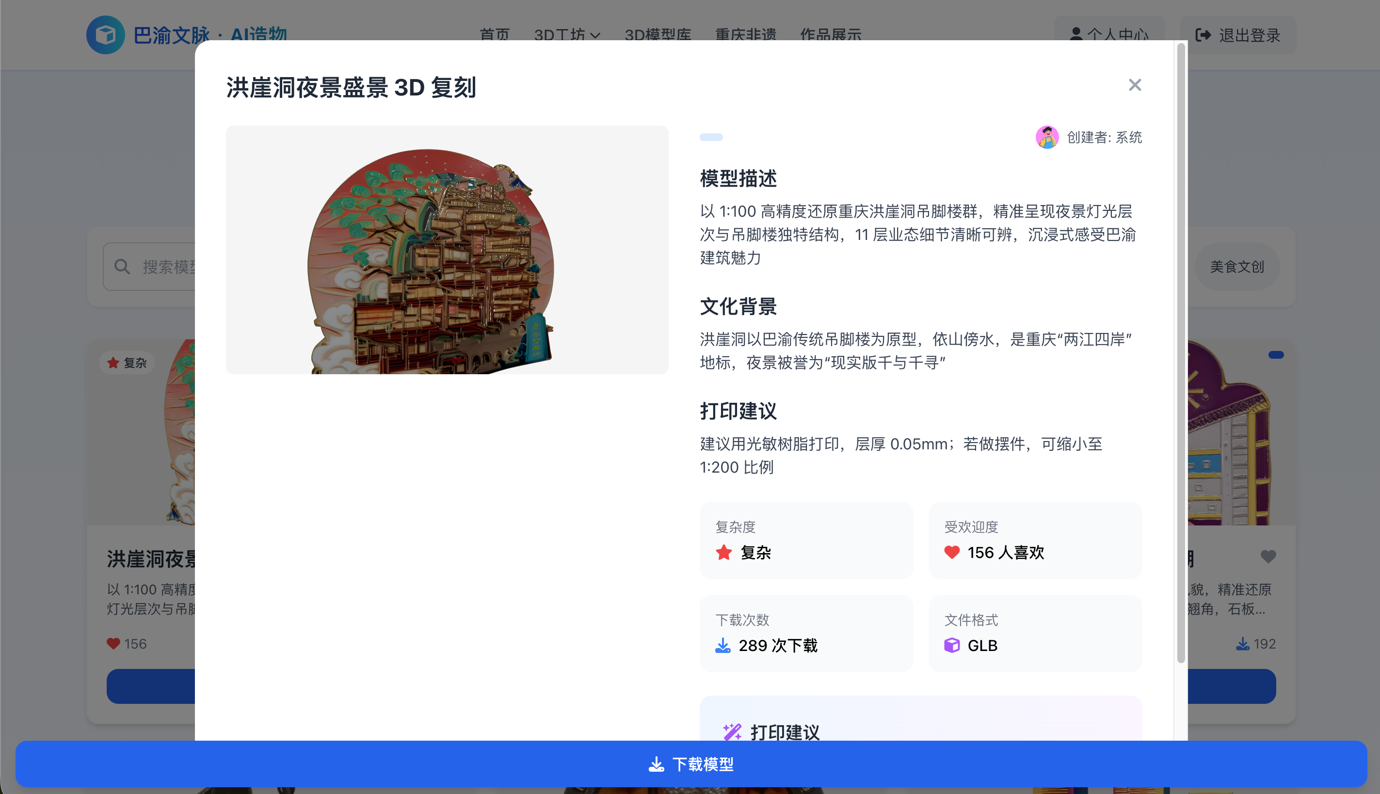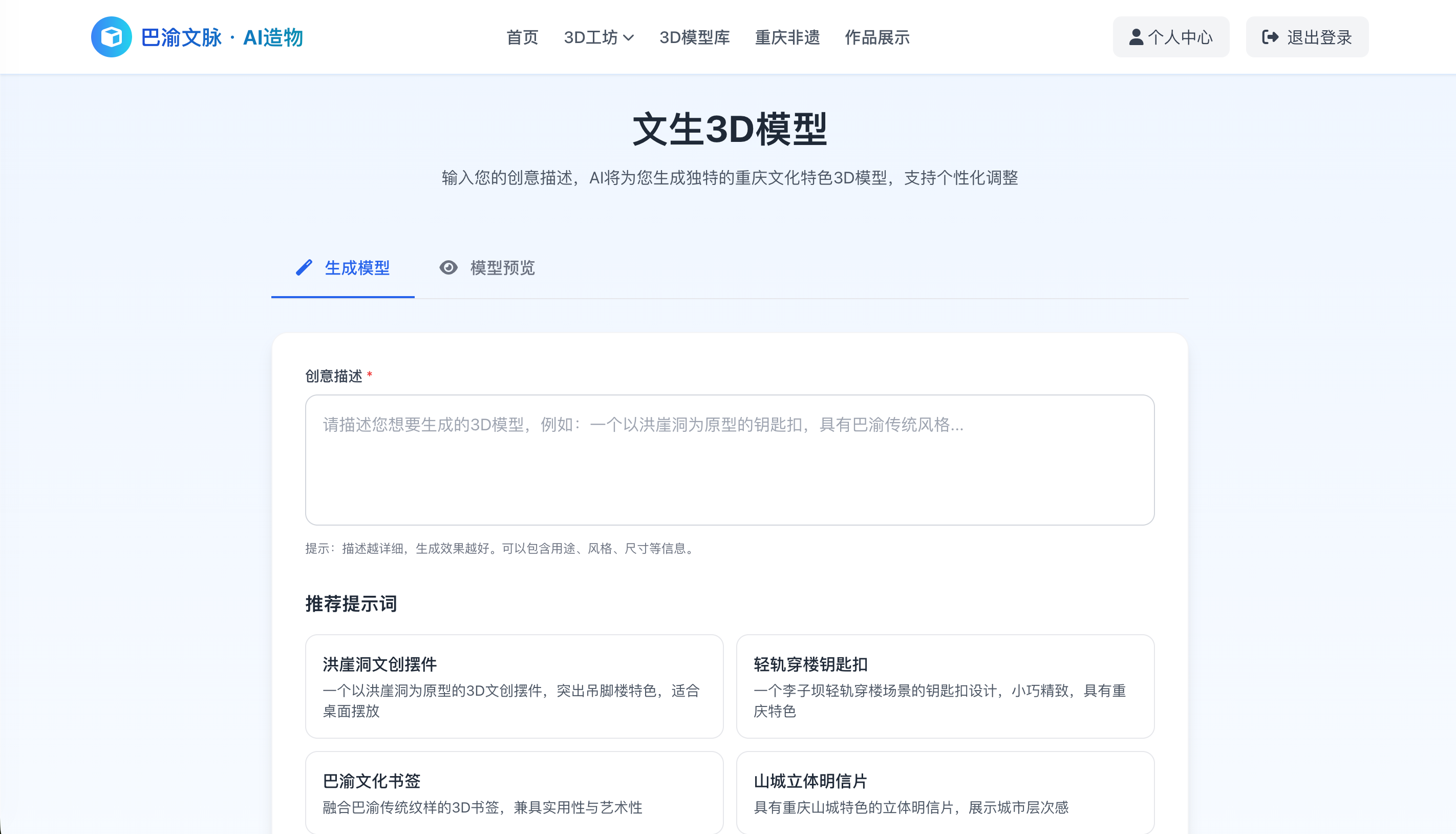 基于 React + Three.js 构建 Web 端 3D 互动平台(B/S 架构),通过 Nginx 部署上线。设计"认知-体验-创造"渐进式产品框架,集成文生3D、图生3D等低门槛创作工具。用户停留时长提升 40%,并获得创新发明专利。